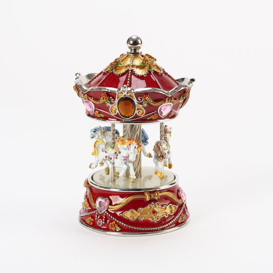 ピューター(錫)オルゴール メリーゴーランド レッド